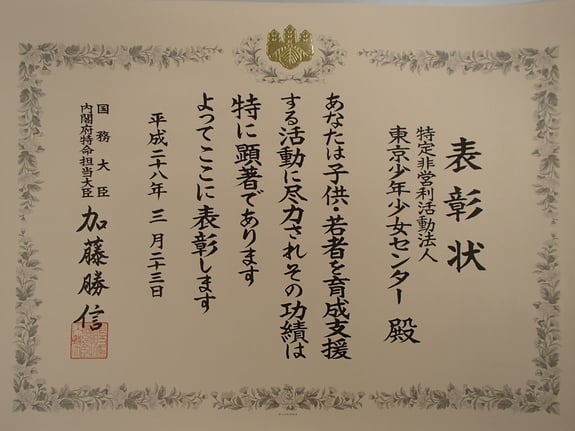 平成27年度「子供と家族・若者応援団表彰」を受賞しました。 内閣府特命担当大臣表彰「子供・若者支援部門」の受賞です。...