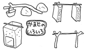 1リットルの牛乳パックは、乾かして使うと、ロウびきになっているため、火つき火力とも高く、雨の日でも効果があるので短冊状にして持っていくとたいへんに便利なものです。