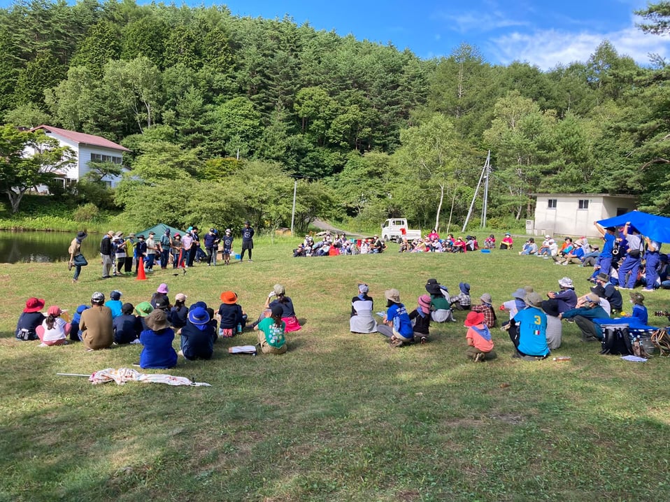 遊びは冒険クラブのキャンプ村2022が8月11日、長野県伊那市千代田湖キャンプ場でスタートしました。約200名の子ども・青年・父母・スタッフが3泊4日の自治的なキャンプ生活を送っていきます。